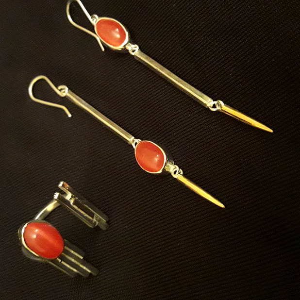 В своих изделиях использует натуральные камни и серебро 925 пробы, металл который особенно ценят и любят в нашем регионе. Считает, что самоцветы приносят особую притягательность его изделиям.